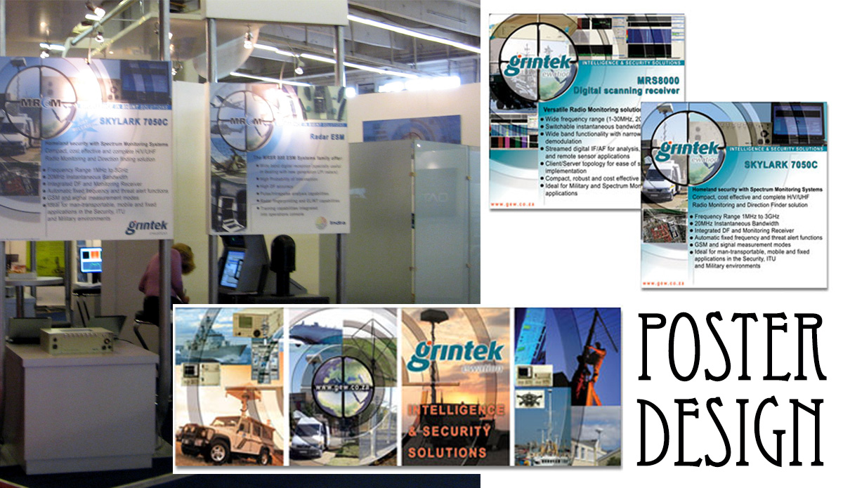 Include: Poster design for large format printing for an exhibition. Calendar design. Package design.